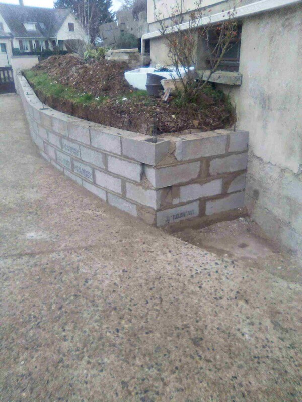 Nous assurerons également vos travaux de maçonnerie, tels que le montage de murs de soutainnement, la création de murs et murets en pierre ou en parpaing, ou de chape de béton, etc...