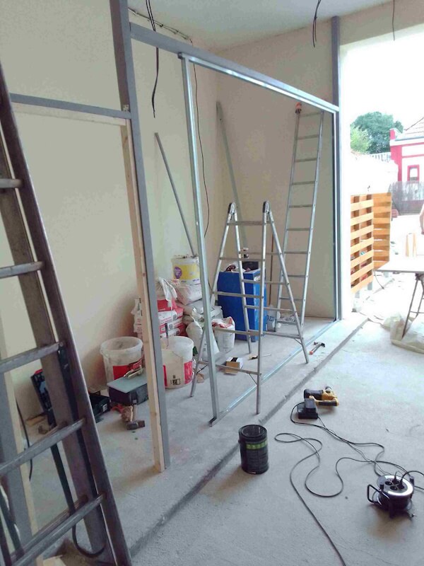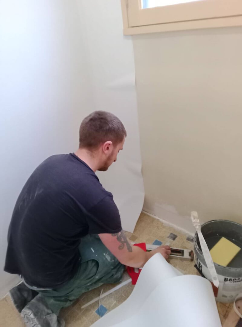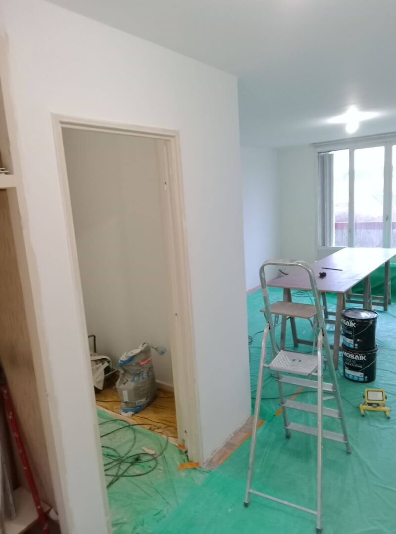 -A l'interieur : Isolation, placo, bande, peinture, carrelage et faïence, enduit de râtissage mur et plafond, pose de revêtements muraux, etc...